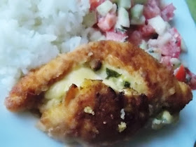 Filety lekko rozbić tłuczkiem. Posolić i popieprzyć z obu stron. Na każdym położyć pasek żółtego sera i kilkanaście liści szpinaku. Zwijać roladki. Panierować w jajku i bułce tartej, smażyć na rozgrzanym oleju.